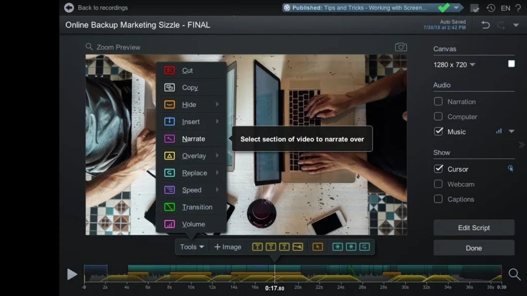 Plan your video with a script timeline, ensuring smoother delivery and consistency.